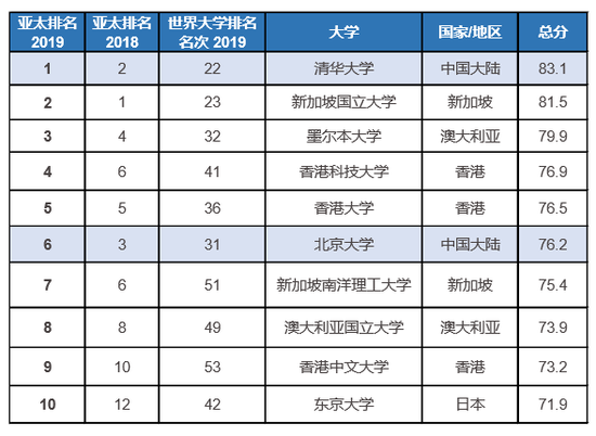 2019年亚太地区大学排名分析了东亚、东南亚和大洋洲的大学。整体排名包括来自13个不同国家/地区的300多所大学。